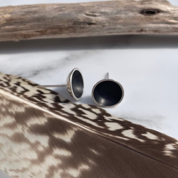 Handmade 10mm Black Hole Concave Sterling Silver Stud Earrings