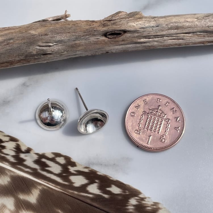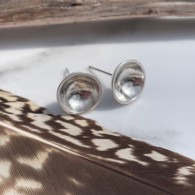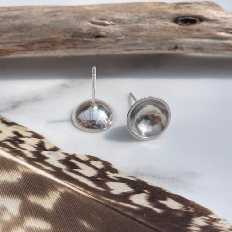 Handmade 10mm Hole Concave Sterling Silver Stud Earrings