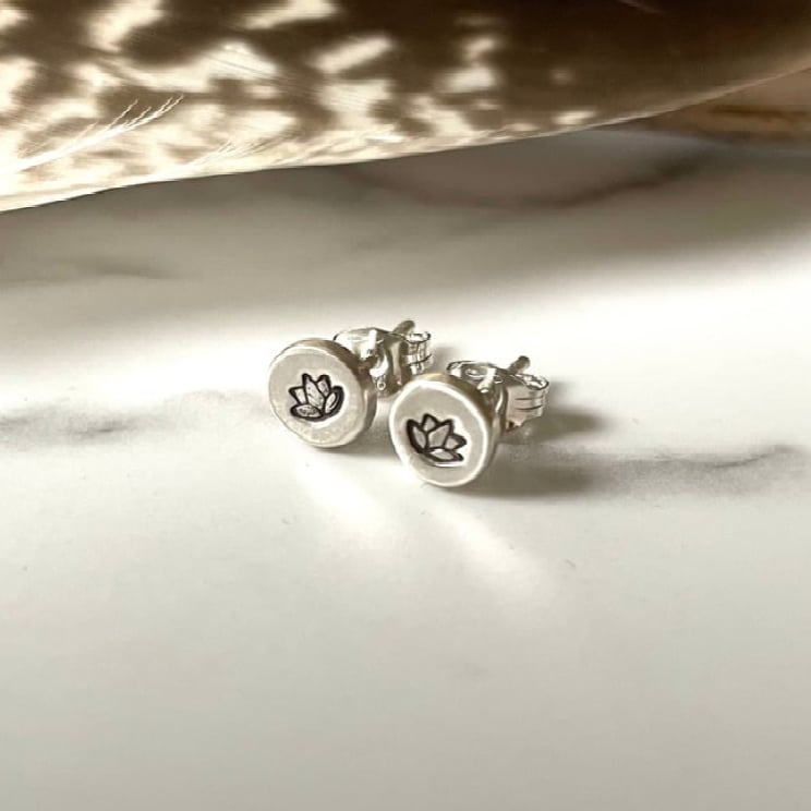 Handmade sterling silver Lotus flower stud earrings 925.