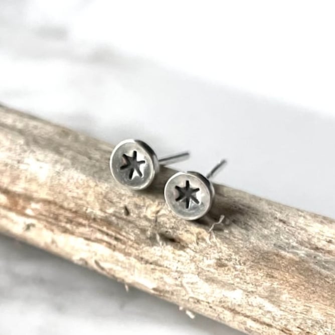 Handmade sterling silver stamped star stud earrings. Tiny star studs 925 silver.