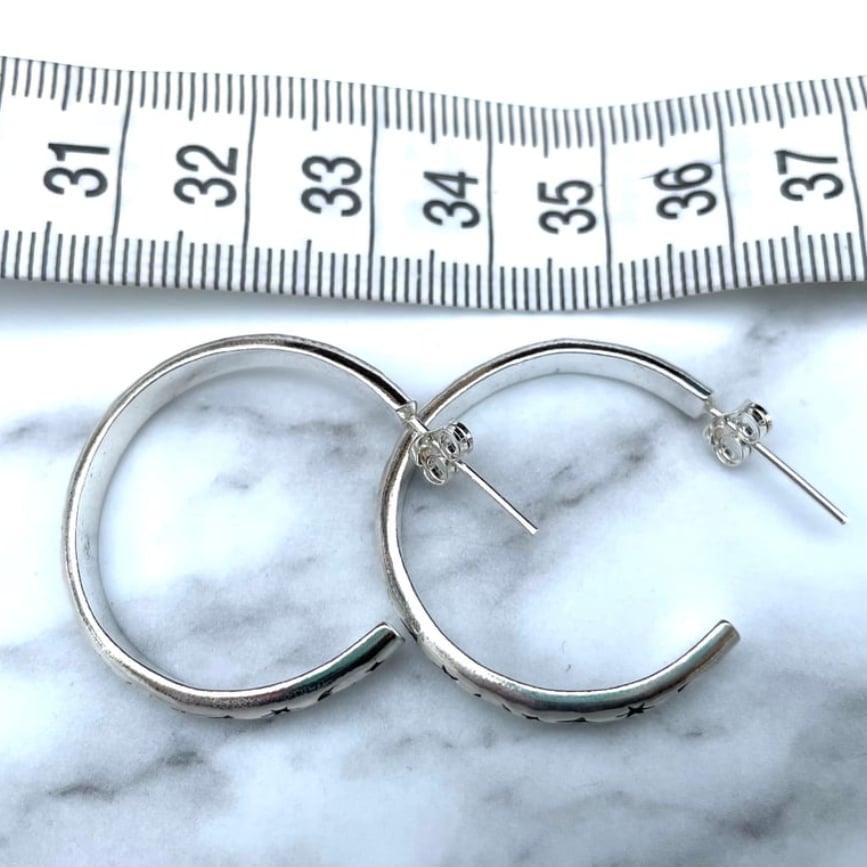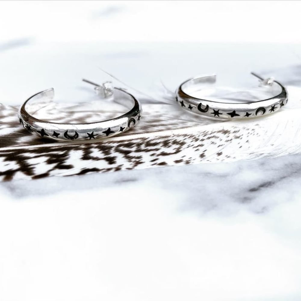 Handmade Sterling Silver Celestial Star And Moon Hoop Earrings 925
