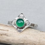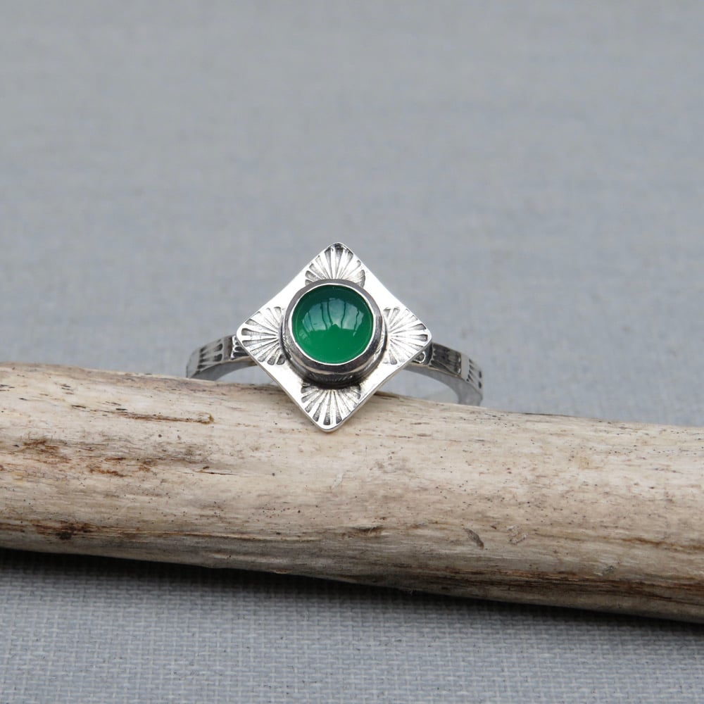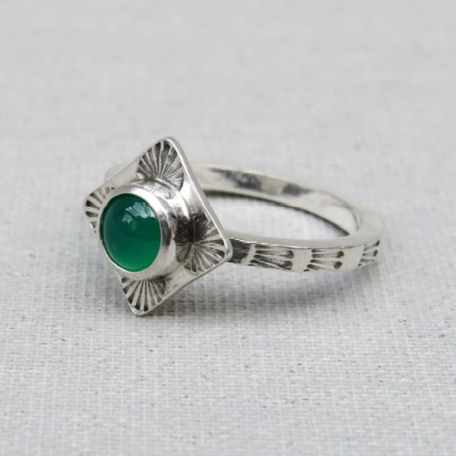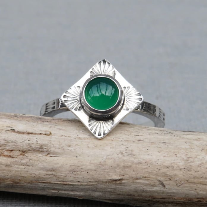 Handmade Sterling Silver Green Onyx Stamped Dainty Ring