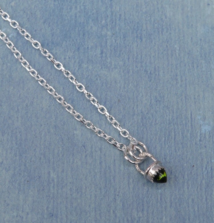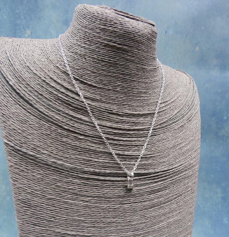 Handmade Sterling silver pendant. Set with a tiny 5mm Moldavite bullet.