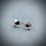 Handmade sterling silver six sided gem faceted stud earrings. Minimal faceted studs 925