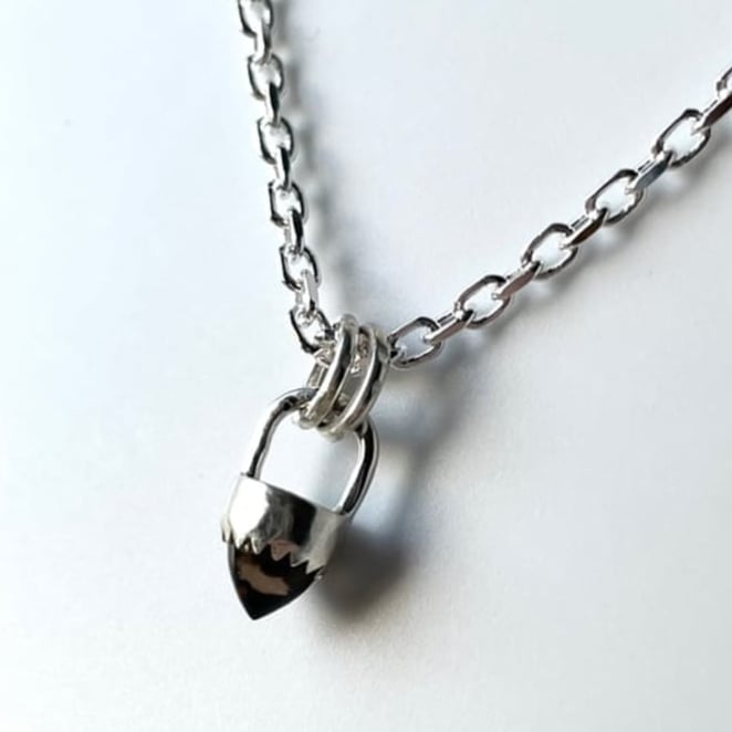 Comes suspended on ansterling silver diamond cut belcher chain.