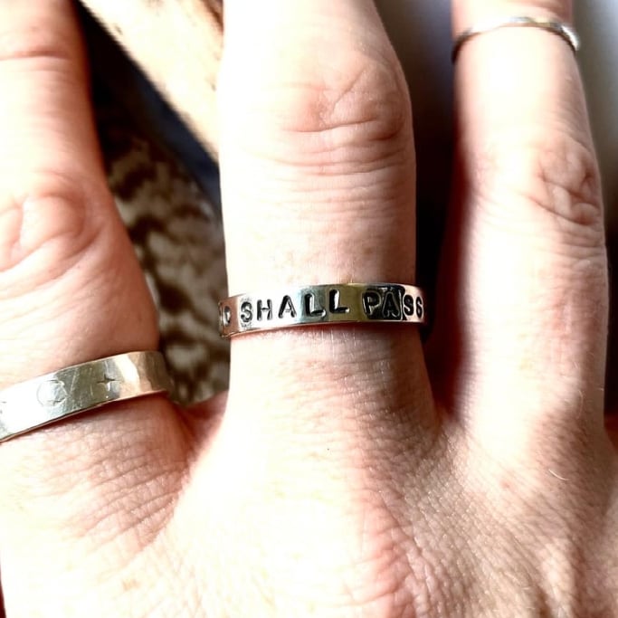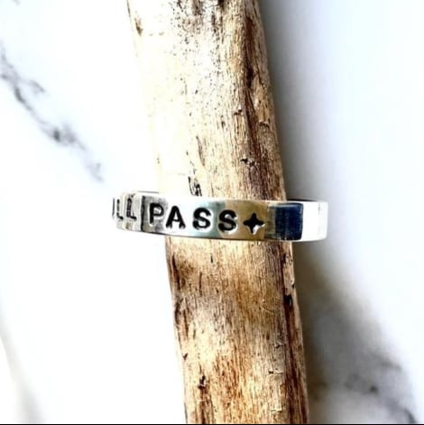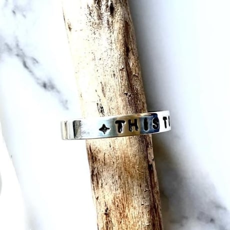 Handmade Sterling silver ring stamped with ‘THIS TOO SHALL PASS' and two tiny stars.