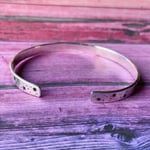 This handmade Sterling silver cuff bracelet is hand stamped with a scattering of stars and dots.