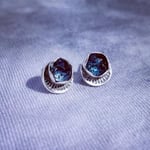 Teal moss kyanite gem stones, set in to 100% handmade sterling silver earrings.