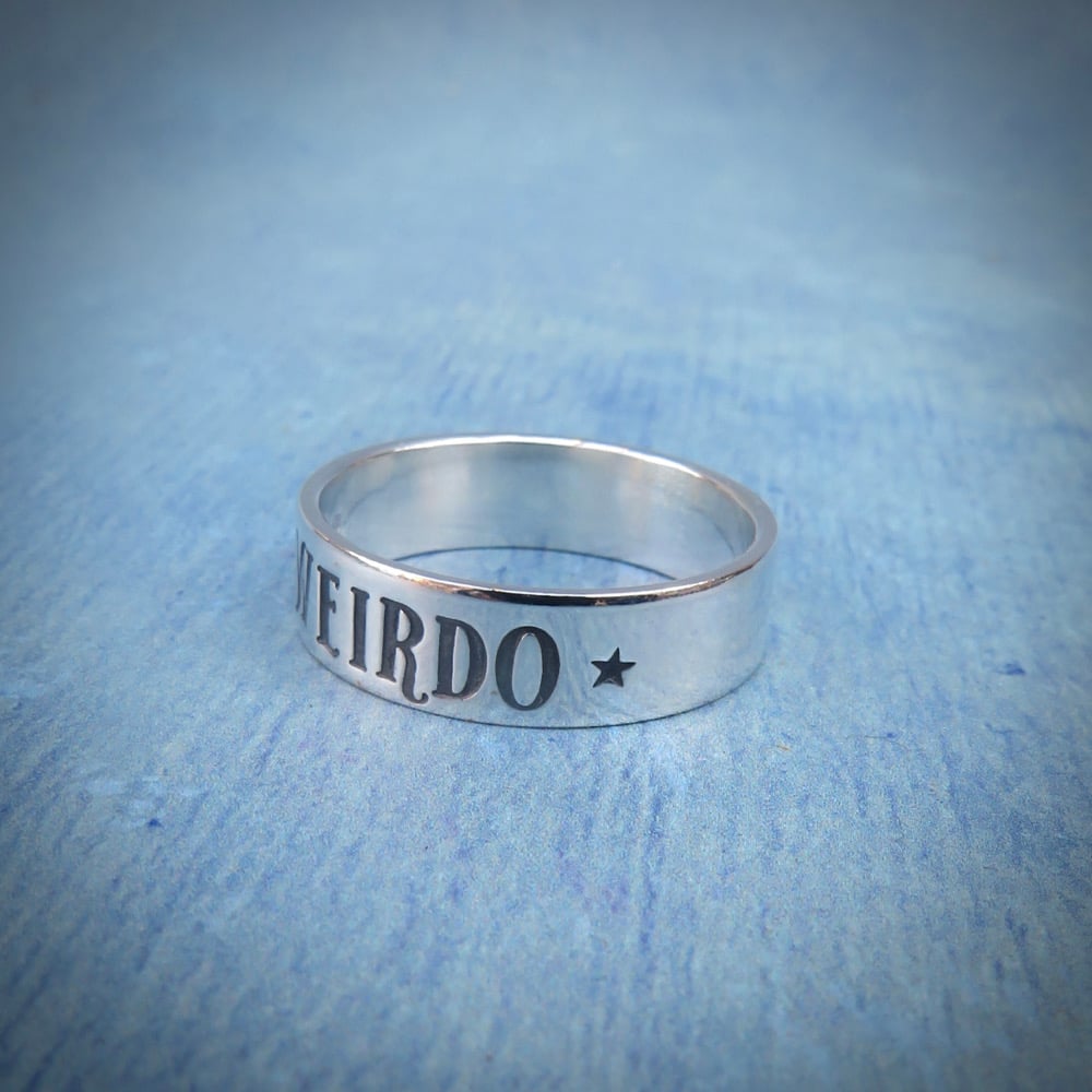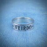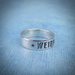WEIRDO silver ring with star and moon stamp (capitals). Hand stamped silver 925 ring