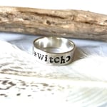 Handmade Sterling silver ring stamped with 'witch' and a star and moon symbol.